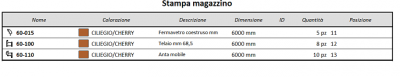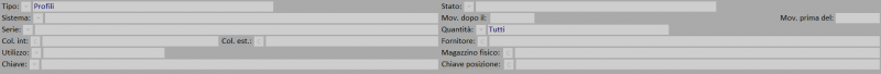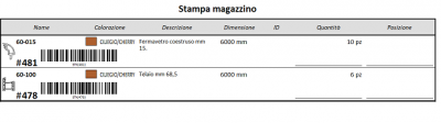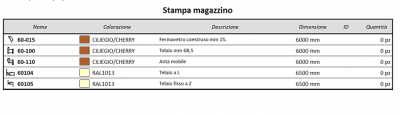 : rappresenta un collegamento diretto con gli archivi degli articoli selezionati (Profili e Accessori). L’operatore può intervenire su di esso senza necessariamente uscire dal magazzino.