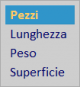 • Pezzi: È il numero di pezzi in giacenza in base all’unità di misura e alla dimensione impostata.